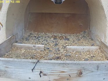 video 21 June - 14:42 - the female returns to the nest to continue sitting on the eggs (in decreasing likelihood of hatching!